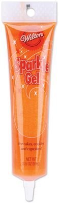 Wilton Orange Sparkle, Sparkle Decorating Gel. Make your cake decorations more dynamic! Simply squeeze on sparkling color effects with the ready-to-use gel. Great for dots, messages, water effects, accents and more! Resealable tube holds 3-1/2 ounces. Various colors available, each sold separately. Made in USA.