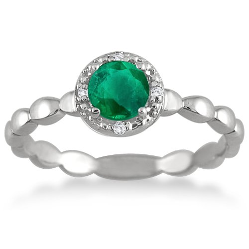 Buy 1/2 Carat Natural Round Emerald and Diamond Ring in .925 Sterling Silver