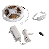 Elemental LED , We designed the 16 Foot Flexible LED Strip Light Kit as a simple, all-inclusive package that enables you to set up an LED light installation in minutes. This kit comes ready for installation:one 16.4 foot spool of Flexible Strip Light, available in warm white and neutral white, one Inline On/Off Switch, one female DC Wire Plug, one 36 Watt Plug-In Adapter. Each strip spool comes with soldered lead wires that connect to the DC Wire Plug, which plugs into the Inline On/Off Switch, which connects directly to the 12V adapter. This plug-and-play LED light kit takes just minutes to install and is both changeable and portable. And you save 20% off the by-the-foot price just by ordering by the spool. The flexibility and compact brightness of LED lighting make it perfect for cove, shelf, and cabinet lighting; project, presentation, and exhibit lighting; and any close-application interior task lighting. Strip lighting can fit anywhere that a light bulb canÕt! In addition to being cuttable to a custom length for your project, and just a quarter of inch wide and less than a quarter inch high, our LED Light Strip is dimmable! This 12-volt, eco-friendly LED light uses only 1.44 Watts of electricity per foot, and this entire strip light spool kit uses less power than a 40 Watt incandescent light bulb. Our flexible strip comes with a self-adhesive 3M backing that allows quick and easy installation on any dry, smooth surface. ...